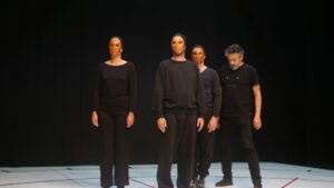 Le Choeur est un ensemble de règles basées sur le regard, l’écoute, l’équilibre, le mouvement et le rythme. C’est une suite d’actions où la réflexion, le choix et l’erreur sont les moteurs du jeu, où l’on doit maîtriser, par des règles simples, tous les paramètres de scène. Ensuite, les actions sont essentialisées, les jeux et l’expression voulus et choisis par le comédien sont mis de côté par le port du masque neutre. Ne transparaîtrons alors que les choses non maîtrisées (démarche, hésitations, crainte, tics…). Le comédien pourra alors en faire un inventaire et, en conscience, les utiliser, les amplifier ou, au contraire, choisir de les oublier.