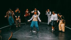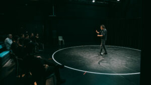 Suite du Chœur 1, ce module se concentre sur les techniques fondamentales du jeu sur scène, en mettant l’accent sur le chœur comme guide central pour l’interaction scénique. Les participants explorent le contrôle du regard, de l’écoute, de l’équilibre, du mouvement et du rythme, tout en utilisant le masque neutre pour révéler les aspects non maîtrisés de leur performance. L’objectif est de libérer le potentiel créatif des acteurs en leur permettant d’internaliser ces règles, ce qui leur permet d’explorer de manière stratégique les éléments qui émergent pendant leur expérience sur scène.